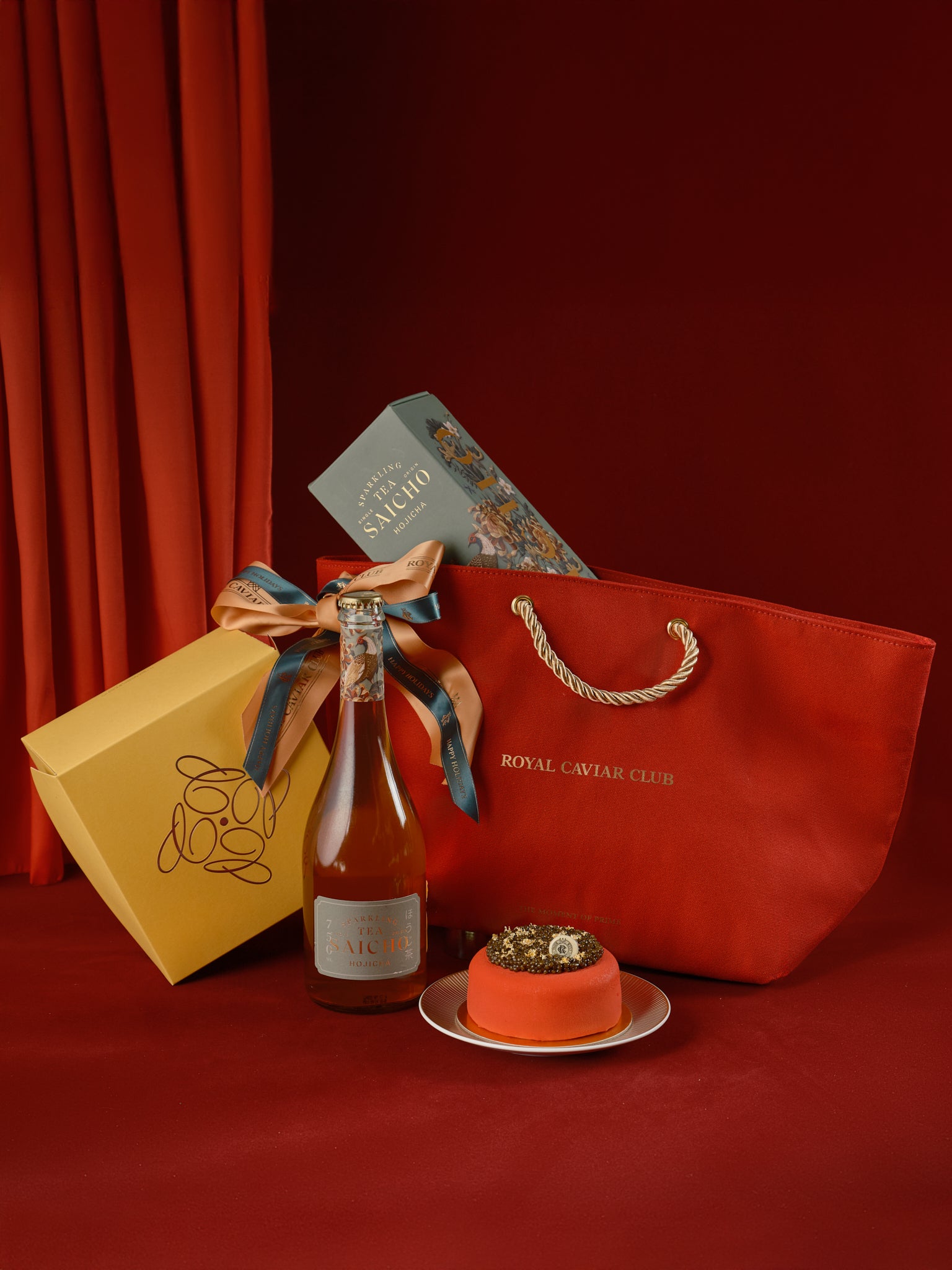 Indulge in a unique fusion of caviar and Japanese-inspired flavours. This hamper combines our signature Caviar Cheesecake (10cm) — available in Hokkaido Original, Ruby, or Black Diamond — with premium Saicho Hojicha sparkling tea (750ml). A sophisticated dessert gift set perfect for luxury food lovers, afternoon tea enthusiasts, and memorable festive celebrations.