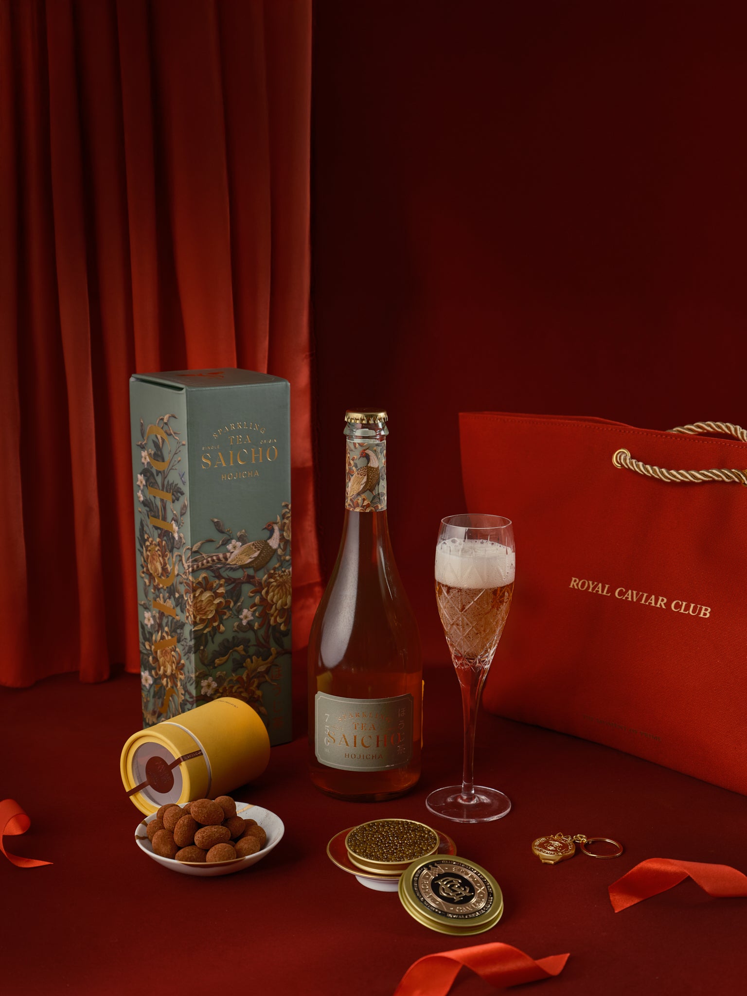 Discover the world of fine caviar with this elegant gift set. Featuring our signature Royal Cristal Caviar (30g) paired with Saicho's award-winning Hojicha sparkling cold-brewed tea (750ml), artisan chocolate bonbons, and a caviar tin opener. Perfect as a luxury gift for first-time caviar lovers or sophisticated food enthusiasts. An ideal festive gift hamper for Christmas, New Year, or corporate gifting in Hong Kong.